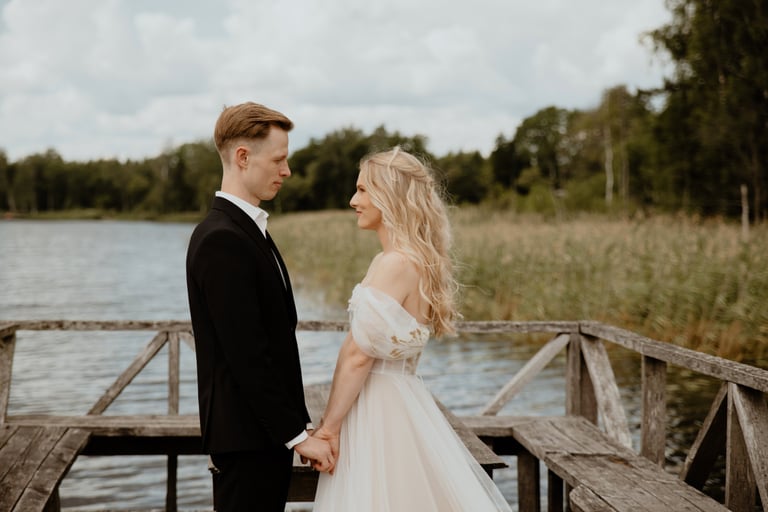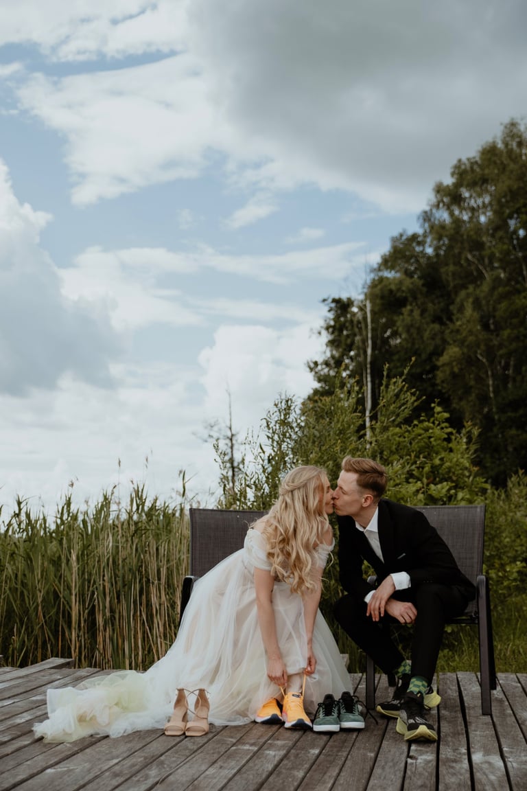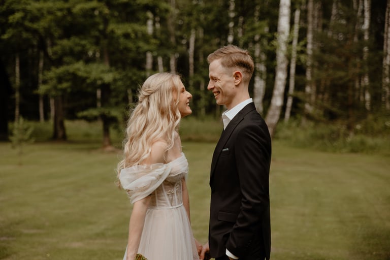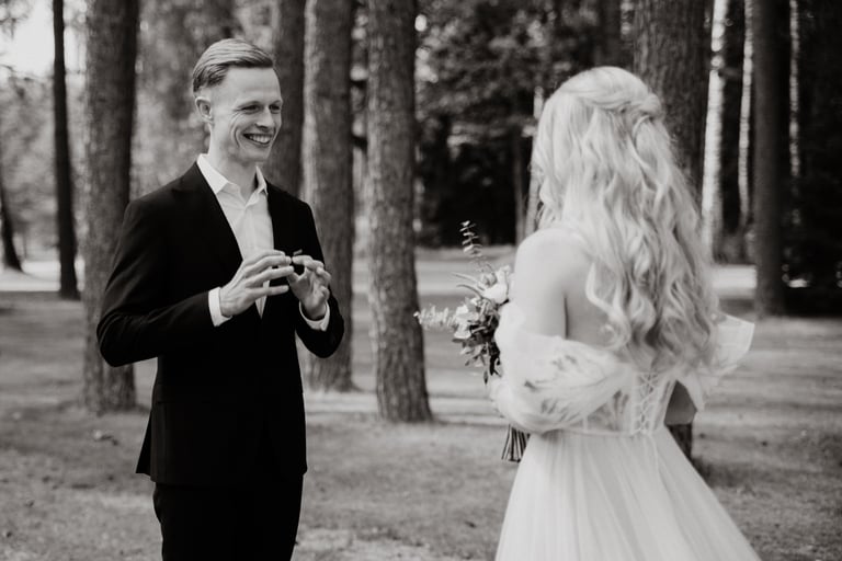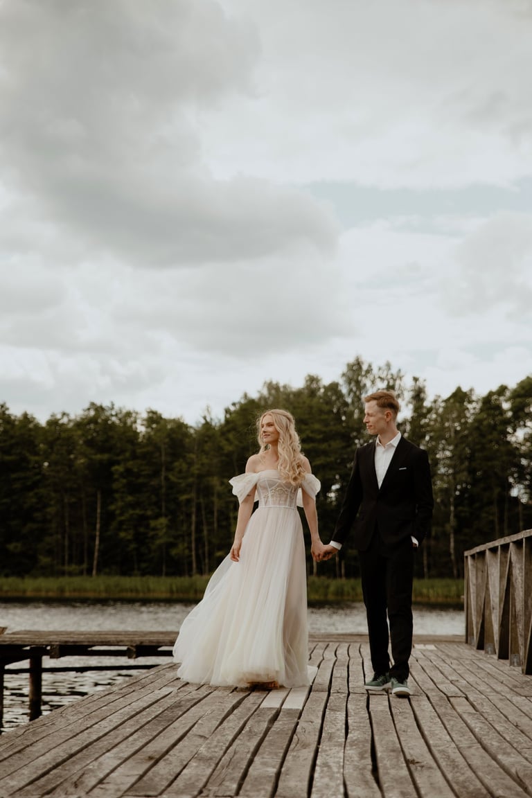 Su Donata ir Karoliu susipažinau ne tiesiogiai, turiu galvoje, kad ne patys jie mane atrado ir ne aš juos, o vestuvių planuotojos/koordinatorės iš VESTUVĖS MARUBELLA. Kai Karolis su Donata atsirinko keletą pasiūlytų fotografų, su kuriais nori susipažinti, labai laukiau nesulaukiau, kada galėsiu prisistatyti ir pajausti, ar tai mano auros žmonės, ar teisingai planuotojos suprato savo klientų kriterijus fotografui ir jo darbui. Bet tik išvydau Donatą ir Karolį, išgirdau jų norus, o tiksliau norą būti nuotraukose tokiais, kokie jie yra, iškart supratau, jog labai norėčiau būti jų dienos fotografe, nes savo nuotraukomis būtent to ir siekiu - natūralumo, šilumos, emocijos. O štai aš čia, Anykščiuose, DONATOS ir KAROLIO vestuvėse!