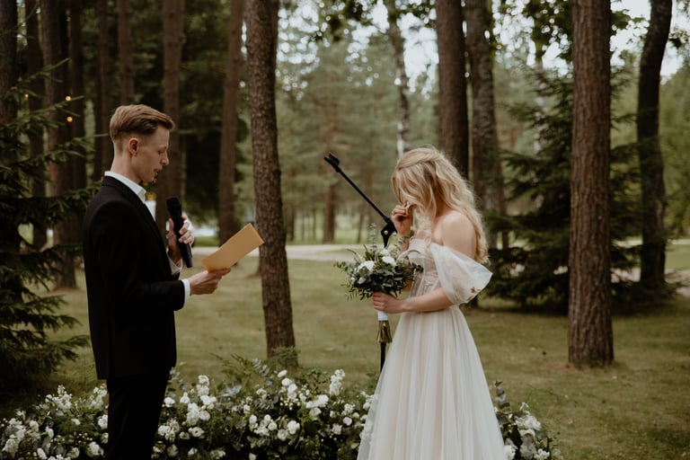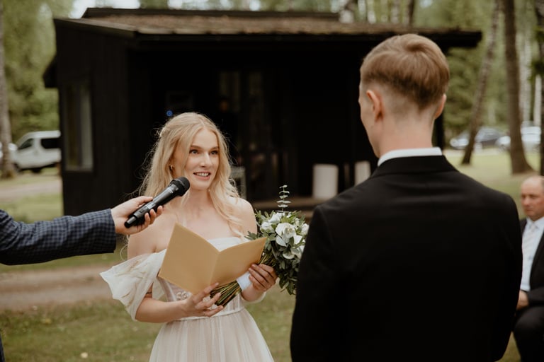 Svečiams susirinkus Donata su Karoliu žengė prie ceremonmeisterio, kur įvyko humanistinė santuoka. Jautriausia buvo tada, kai ceremonmiesteris skaitė jų susipažinimo istoriją. Donatos akyse pasirodžiusios ašaros palietė ne tik Karolį, bet ir susirinkusiuosius. O dar kai jiedu vienas kitam skaitė savo meilės įžadus, nuo tyrumo šiurpuliukai bėgiojo per visą kūną