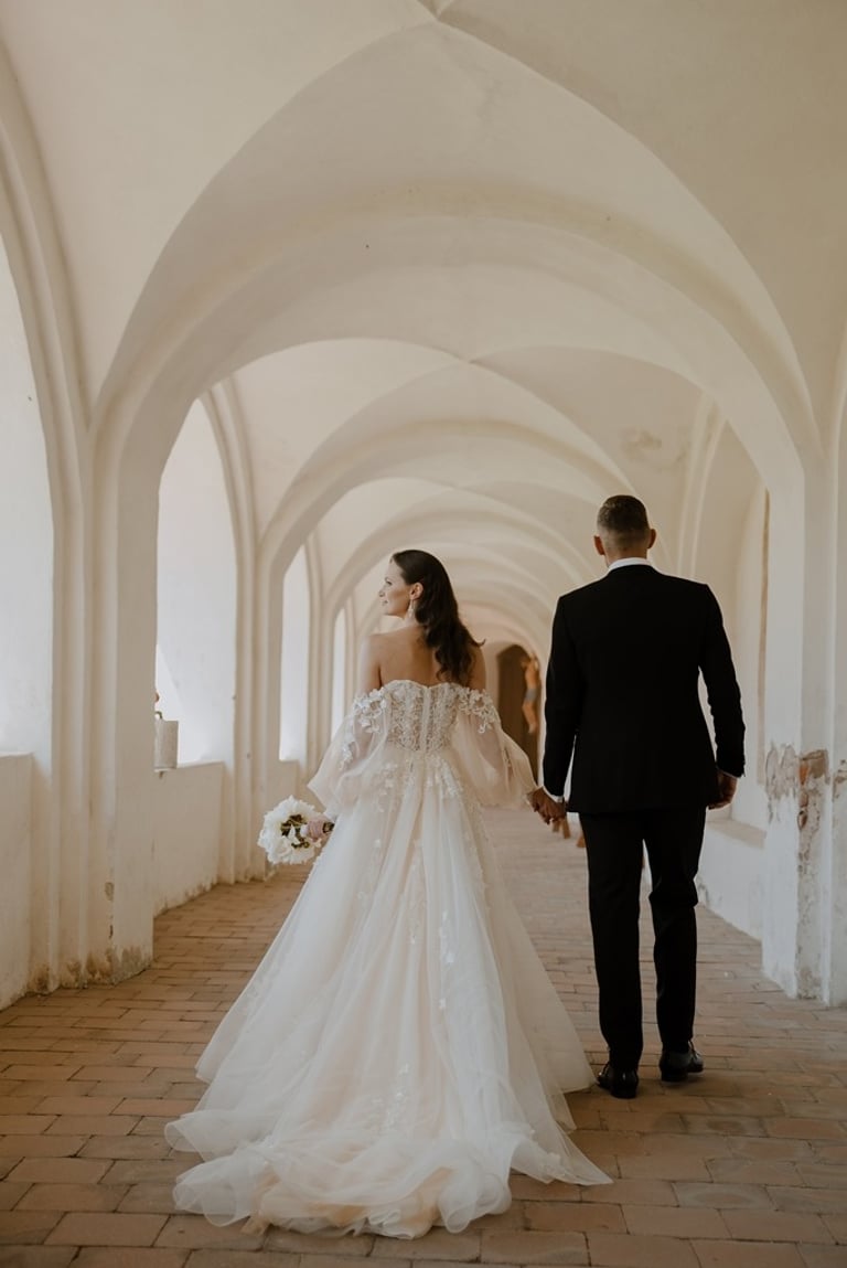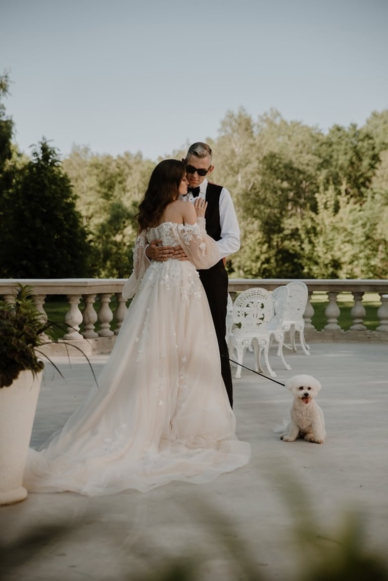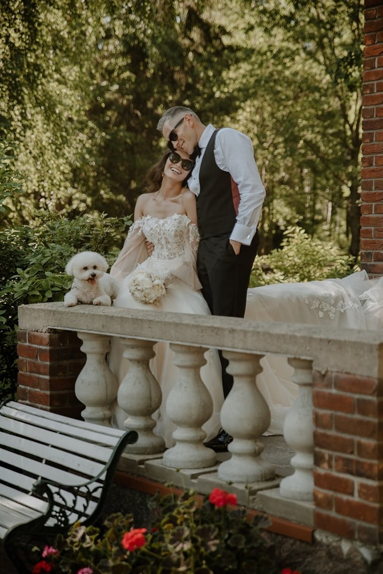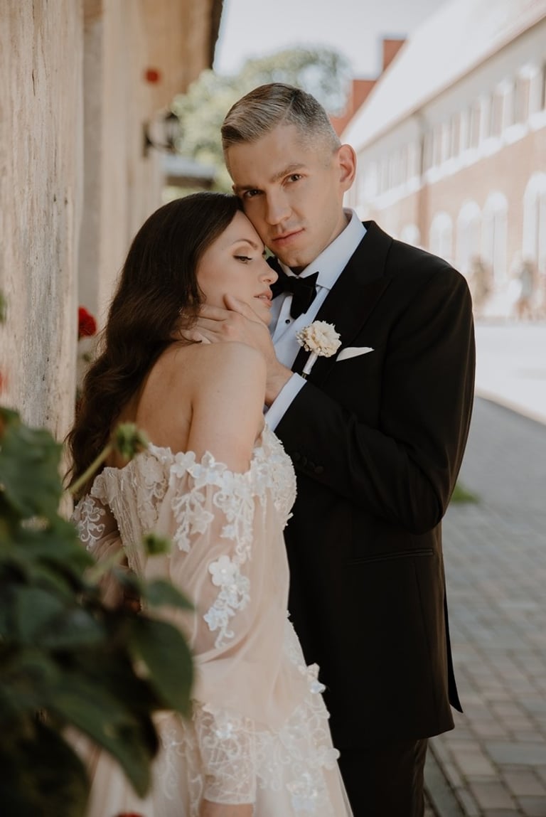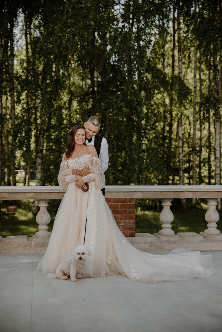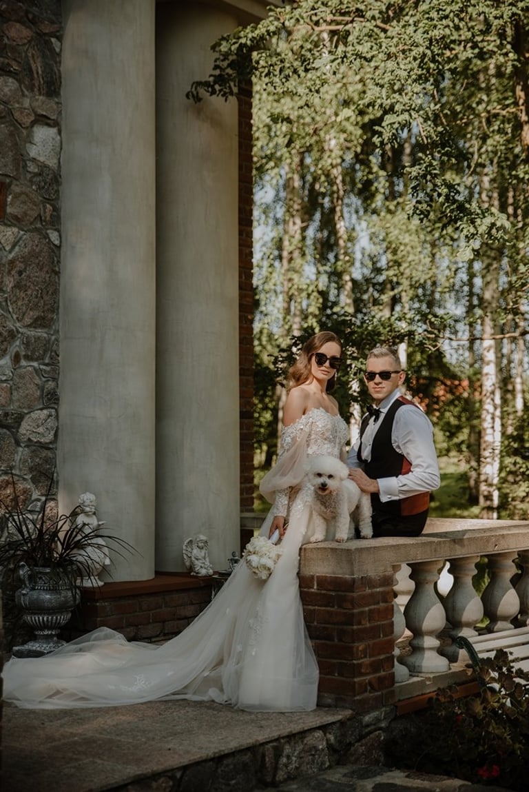 Kai tik susitikome su Aivaru ir Gabriele vienuolyno kiemelyje buvau pakerėta abiejų žavesio. Abu atrodė tarsi iš žurnalo viršelio. Nors ir pirmoji jų gyvenime fotosesija, tačiau atpalaiduoti juodu nebuvo sunku. O kai į fotosesijos antrą dalį buvo atvežta ir šunytė Fibi, tai emocijas tik spėk gaudyti. Gabrielė - ta energingoji poros puselė, o Aivaras - ramioji ir apmąstančioji pusė. Man tokios poros labai patinka, kai yra laikoma pusiausvyra. Ir fotosesijoje pavyksta tai atspindėti, ir gyvenime paprasčiau (iš patirties kalbu :)). Mielieji, sveikinu dar kartą tapus vyru ir žmona. Abu esat taip paprastai į gyvenimą žiūrintys žmonės - kitiems pasimokyti tik. Nuoširdumas, geras humoro jausmas, meilė gyvūnams, rūpestis kitais, žaismingumas - tai judu.