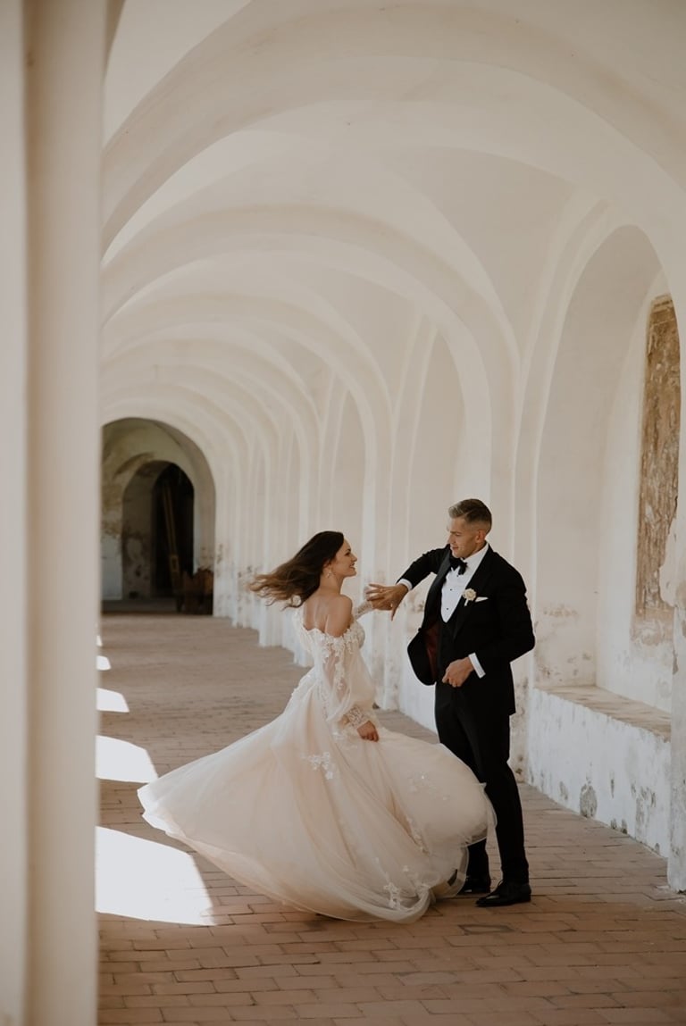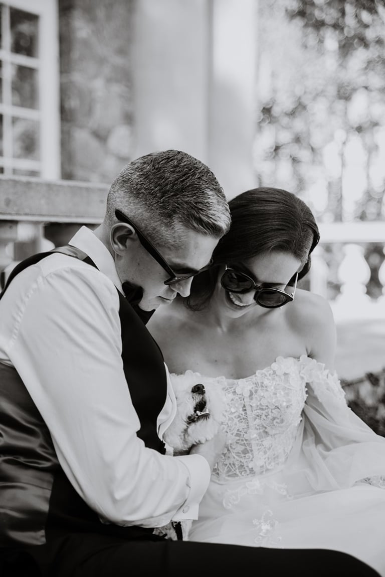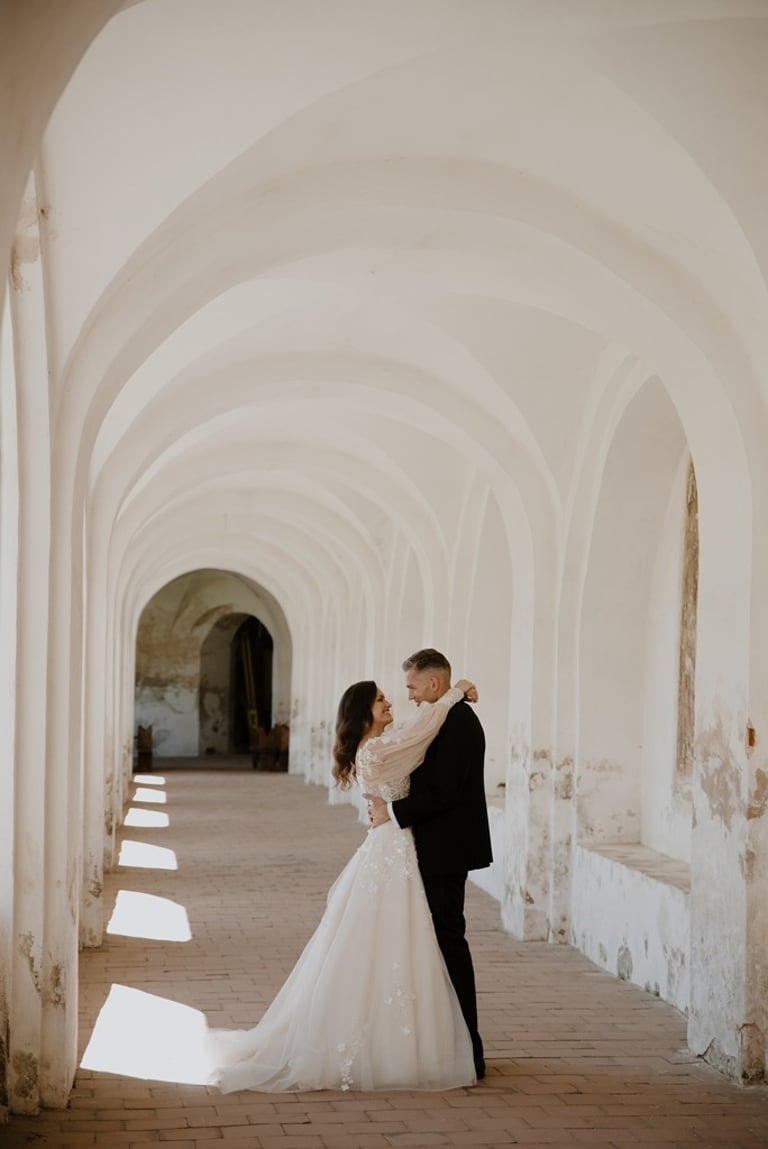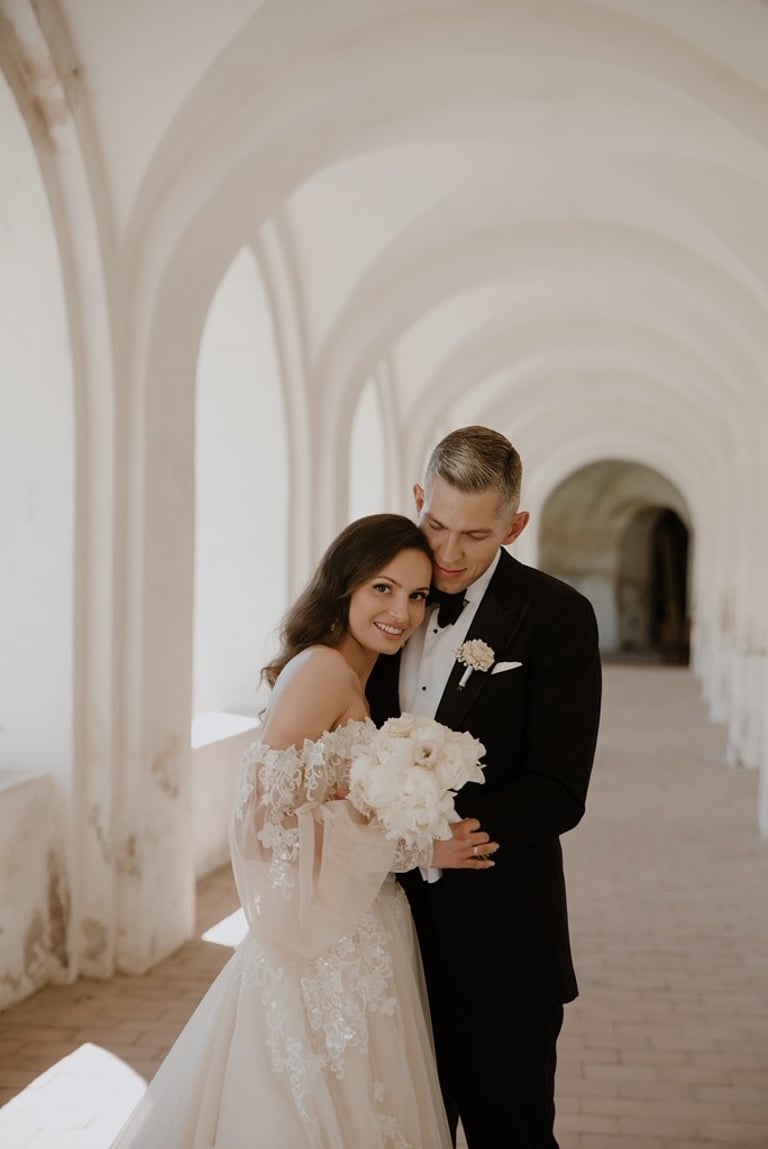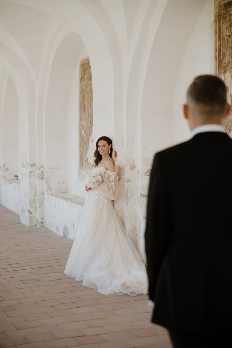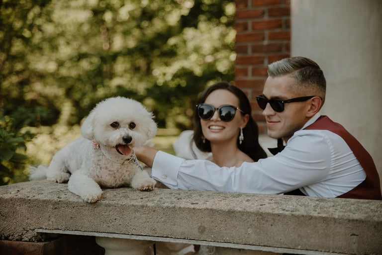 Kai tik susitikome su Aivaru ir Gabriele vienuolyno kiemelyje buvau pakerėta abiejų žavesio. Abu atrodė tarsi iš žurnalo viršelio. Nors ir pirmoji jų gyvenime fotosesija, tačiau atpalaiduoti juodu nebuvo sunku. O kai į fotosesijos antrą dalį buvo atvežta ir šunytė Fibi, tai emocijas tik spėk gaudyti. Gabrielė - ta energingoji poros puselė, o Aivaras - ramioji ir apmąstančioji pusė. Man tokios poros labai patinka, kai yra laikoma pusiausvyra. Ir fotosesijoje pavyksta tai atspindėti, ir gyvenime paprasčiau (iš patirties kalbu :)). Mielieji, sveikinu dar kartą tapus vyru ir žmona. Abu esat taip paprastai į gyvenimą žiūrintys žmonės - kitiems pasimokyti tik. Nuoširdumas, geras humoro jausmas, meilė gyvūnams, rūpestis kitais, žaismingumas - tai judu.