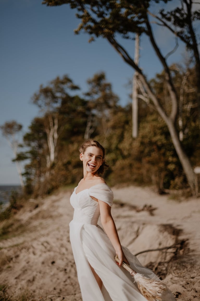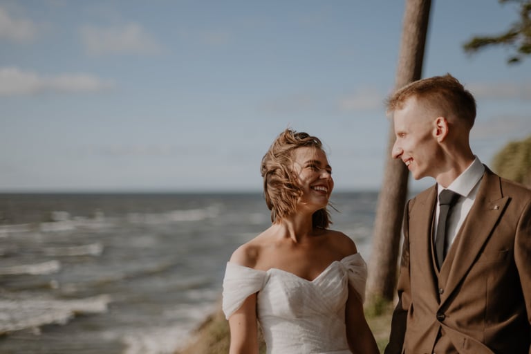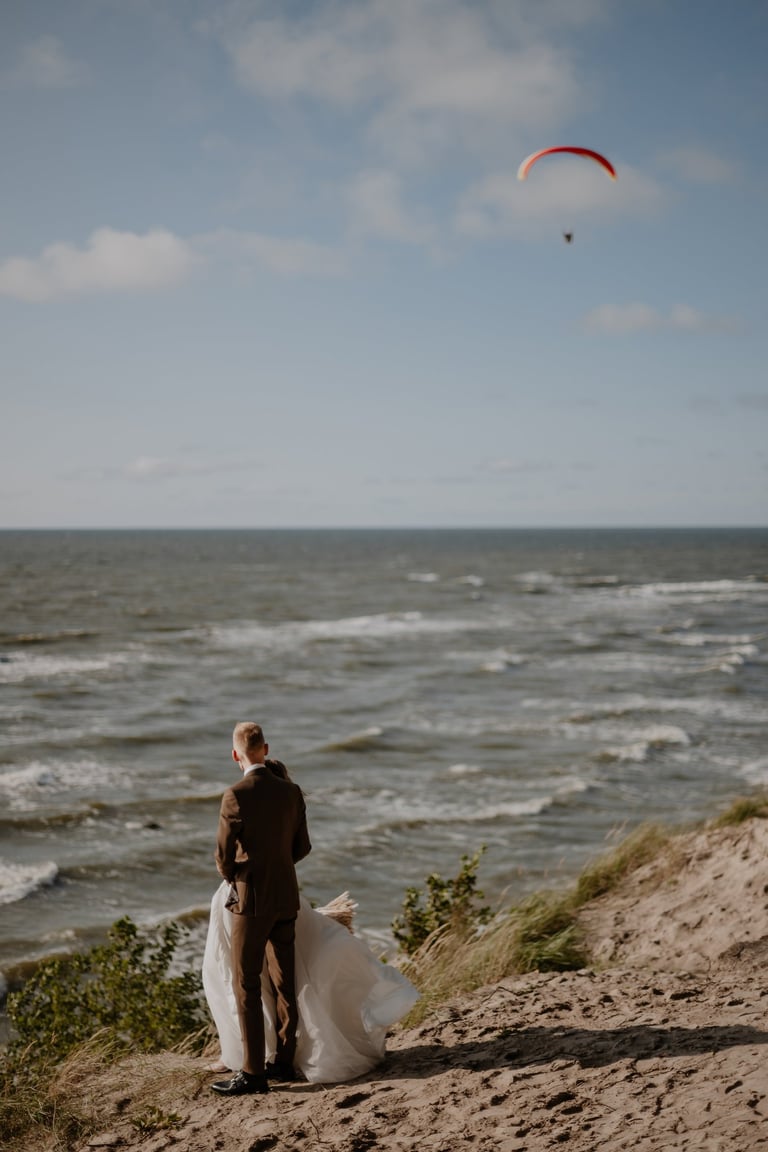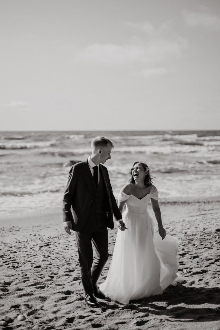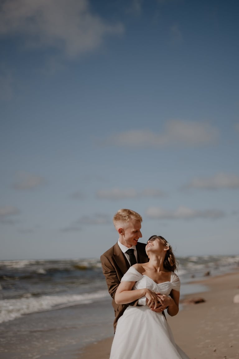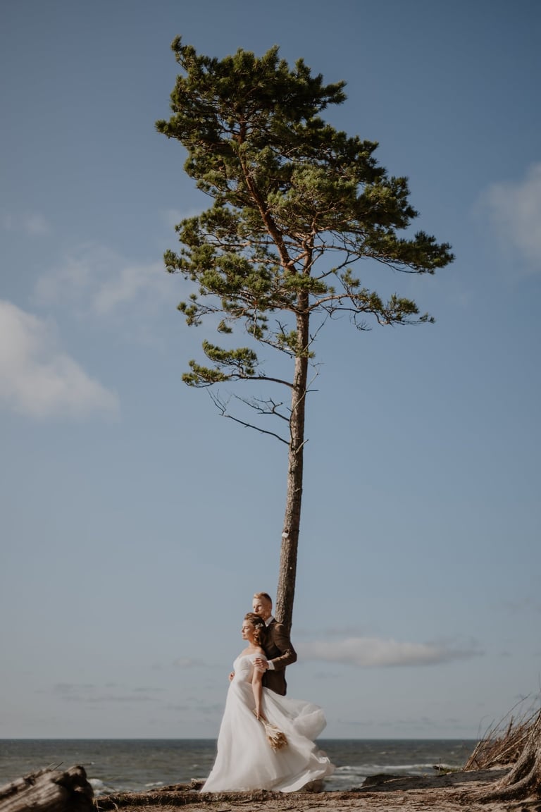Atėjus lauktai dienai, dangus mainėsi kas keletą minučių, bet išėjus iš bažnyčios, saulė taip nutvieskė, kad nebeliko nė vieno debesėlio. Vėjas žinoma neapleido ir nepagailėjo stiprių gūsių, bet pasikinkėm jį ir išnaudojom fotosesijai. Jau priešvestuvinės fotosesijos metu supratau, jog su Greta ir Justu bus taip gera, jog nesinorės, kad fotosesija pasibaigtų. Jie pajautė mane, aš pajaučiau juos. Gretos vėjavaikiškumas ir Justo konkretumas, taip puikiai padėjo patiems atsiskleisti, kad buvo be galo gražu žiūrėti