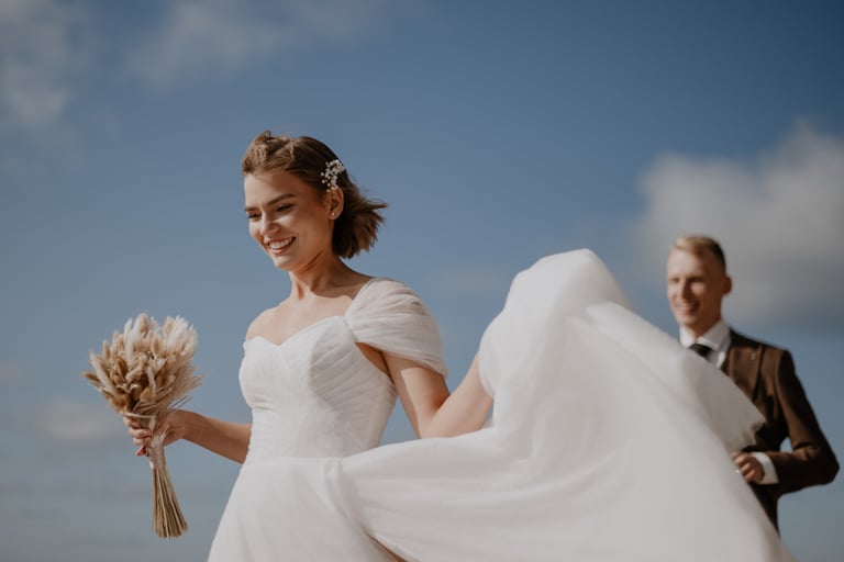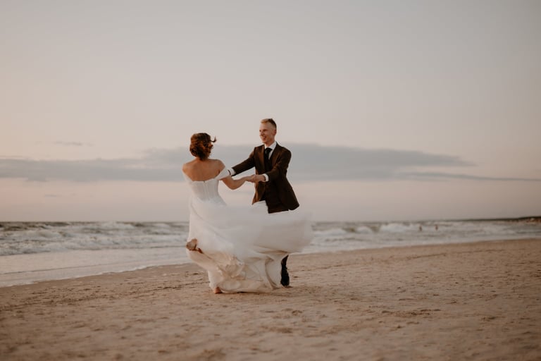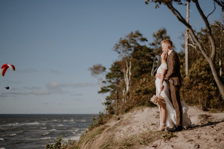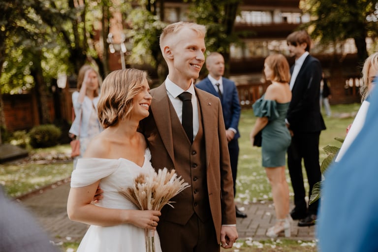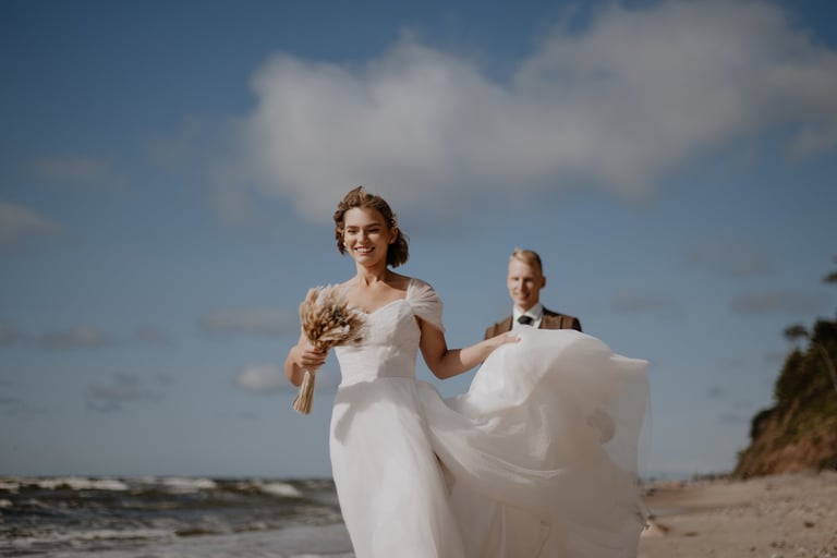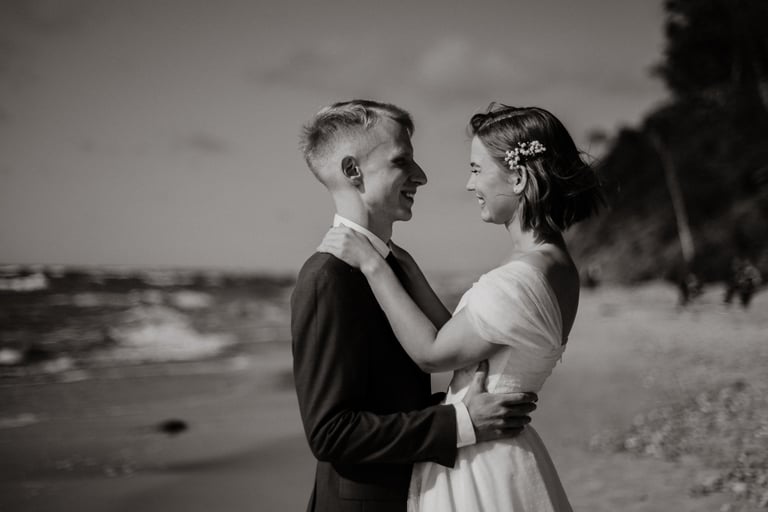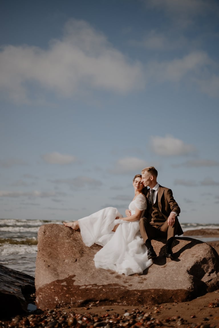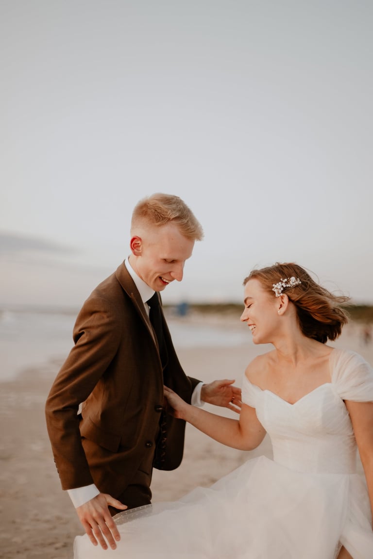 Atėjus lauktai dienai, dangus mainėsi kas keletą minučių, bet išėjus iš bažnyčios, saulė taip nutvieskė, kad nebeliko nė vieno debesėlio. Vėjas žinoma neapleido ir nepagailėjo stiprių gūsių, bet pasikinkėm jį ir išnaudojom fotosesijai. Jau priešvestuvinės fotosesijos metu supratau, jog su Greta ir Justu bus taip gera, jog nesinorės, kad fotosesija pasibaigtų. Jie pajautė mane, aš pajaučiau juos. Gretos vėjavaikiškumas ir Justo konkretumas, taip puikiai padėjo patiems atsiskleisti, kad buvo be galo gražu žiūrėti