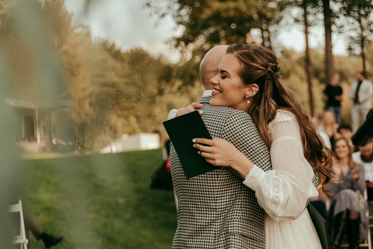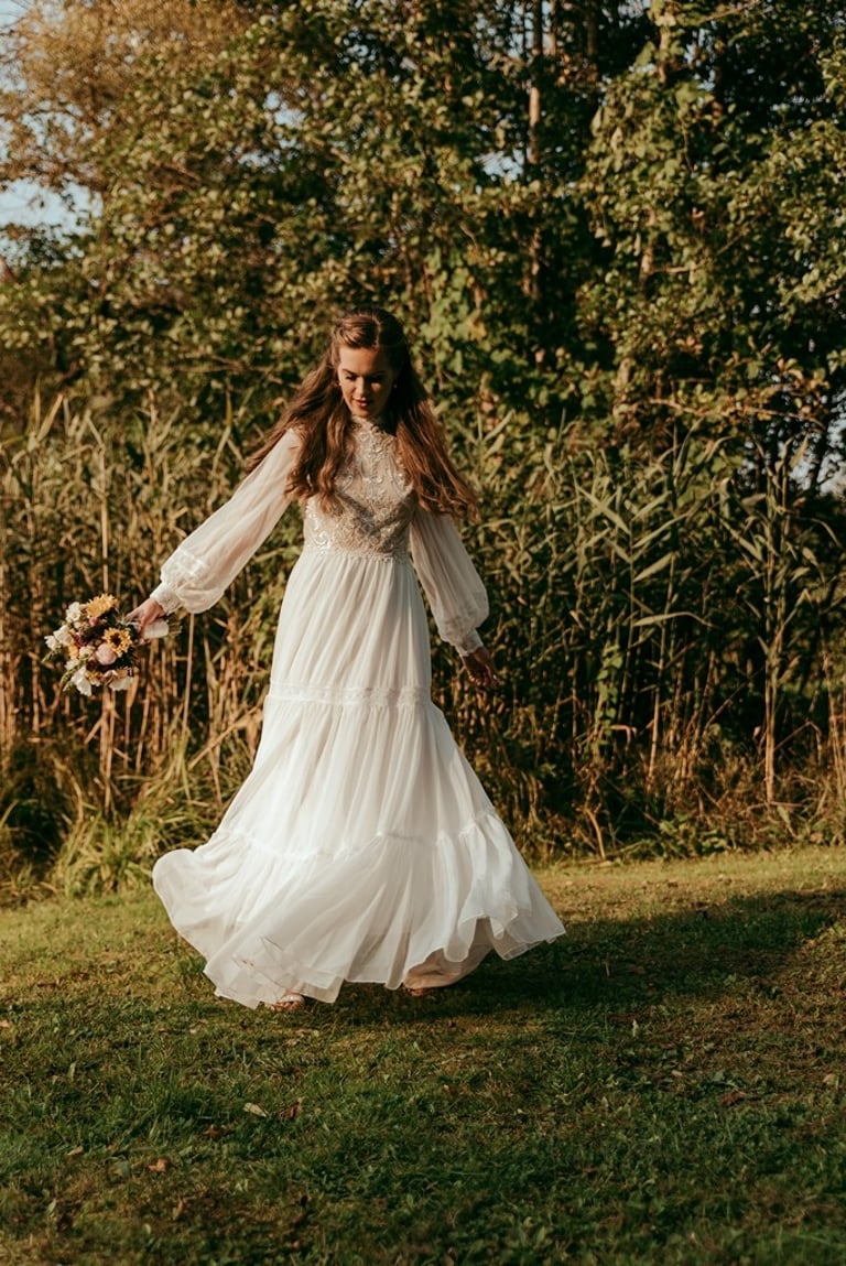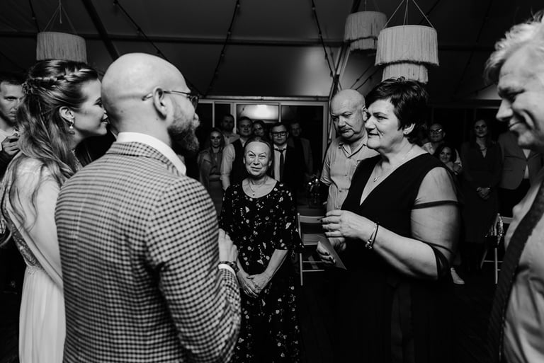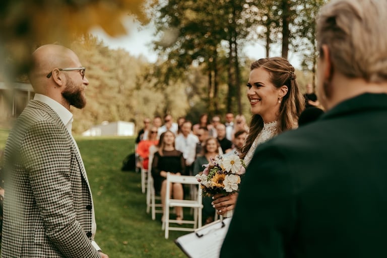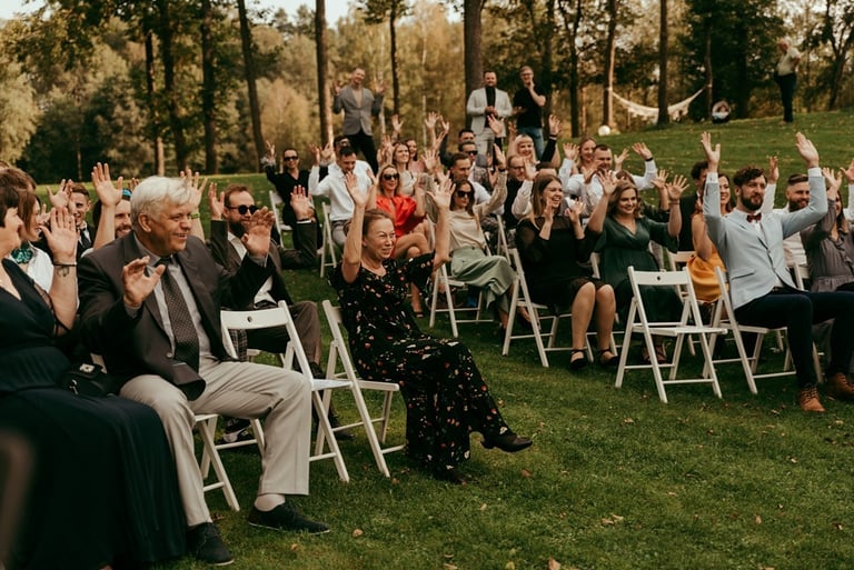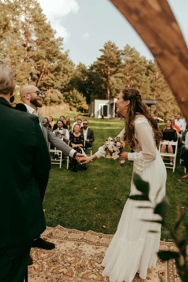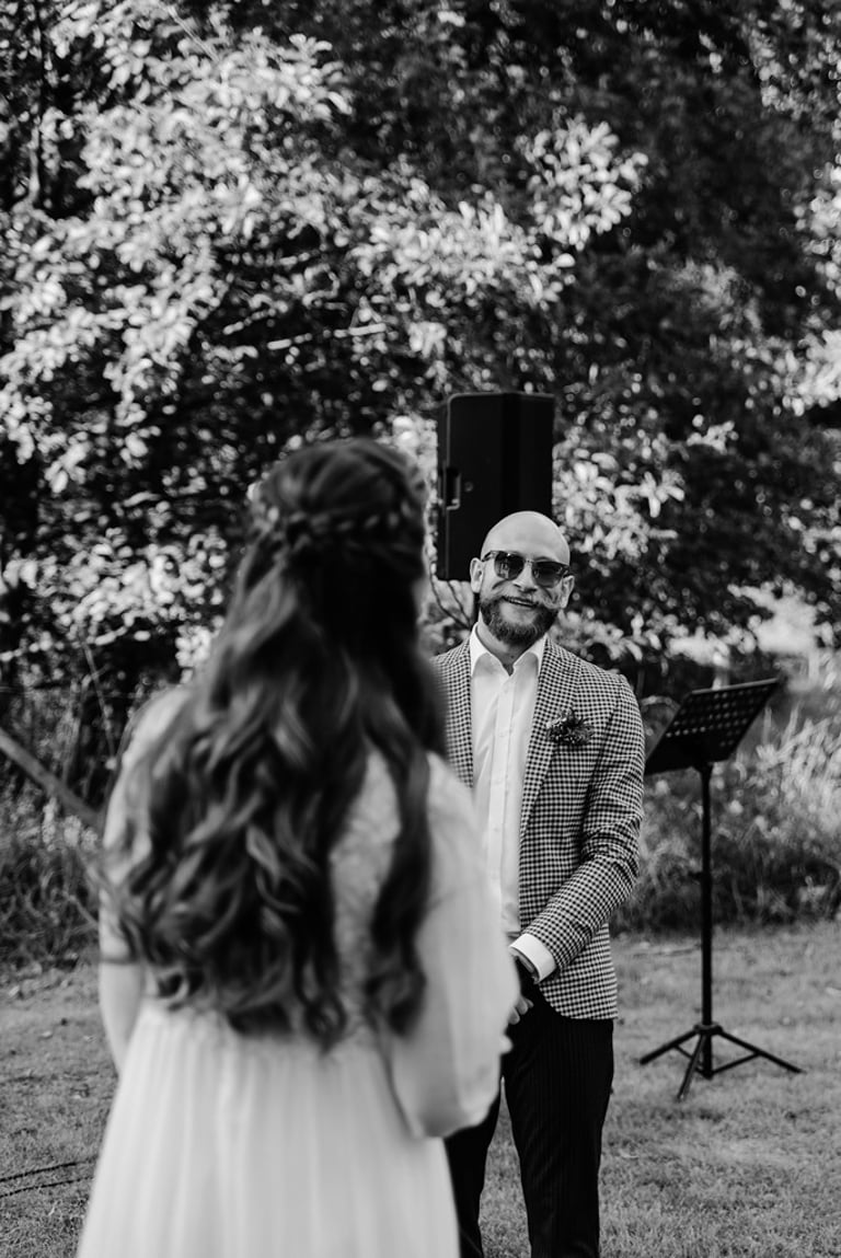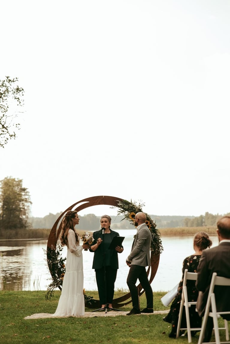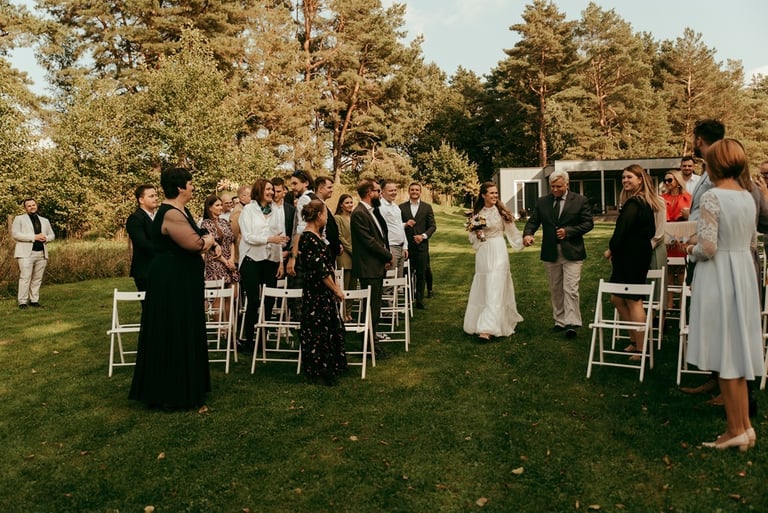 Gretą pažinojau iš anksčiau darytos fotosesijos Nebrisius.lt projektui. Ji mane prisiminė ir pranešė žinią, jog planuoja vestuves ir nori, jog aš jas įamžinčiau. Apsidžiaugiau, nes Greta ypatingai nuoširdus ir džiugesiu spindintis žmogus. Taigi, atėjo rugsėjo 9-oji. Ketvirtadienis. Vykstu miškeliais į Gretos ir Nikitos cermonijos vietą. Užklimpstu vienoj vietoj, nes navigacija sugalvoja pajuokauti. Ištraukia smėliavežis mano automobilį ir toliau riedu su visa palyda. Atvykus į vietą, suprantu, kad bus nuostabi ceremonija ir dar nuostabesnė šventė.