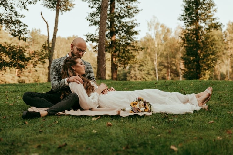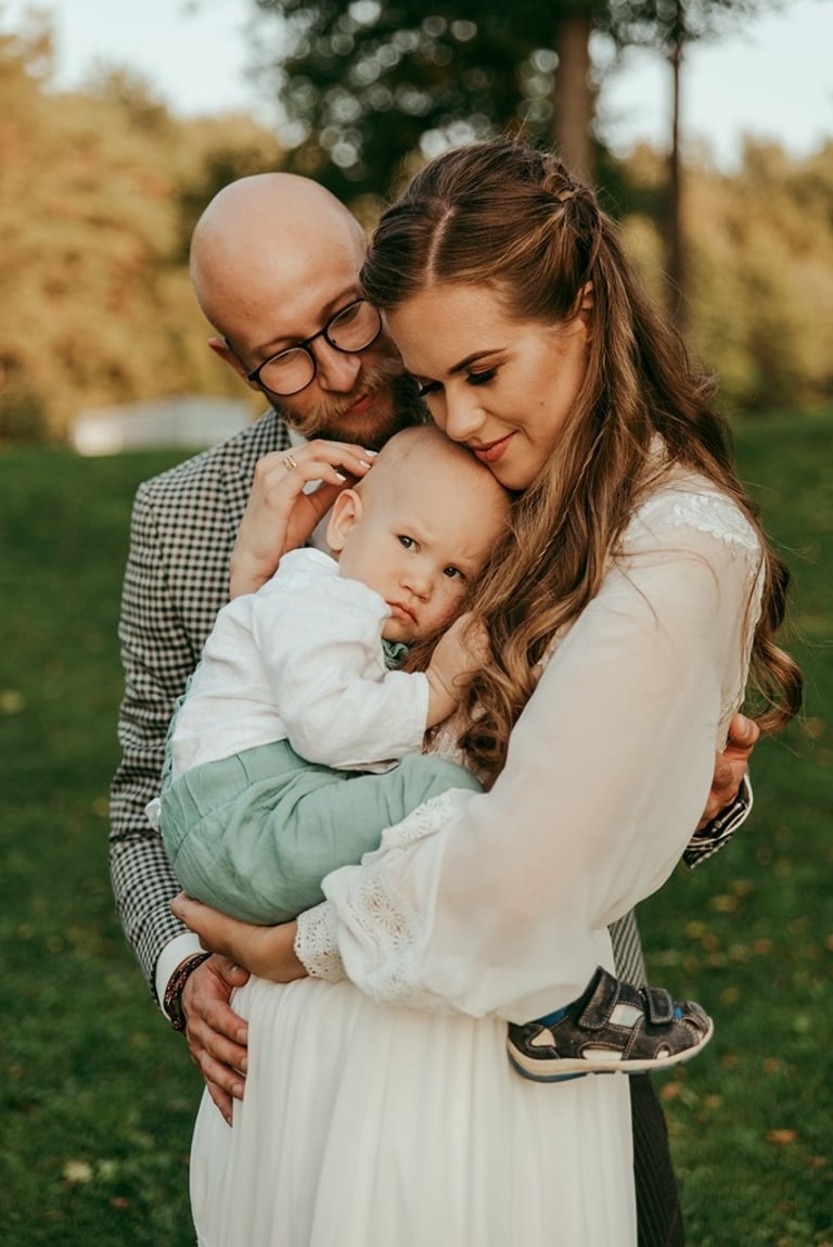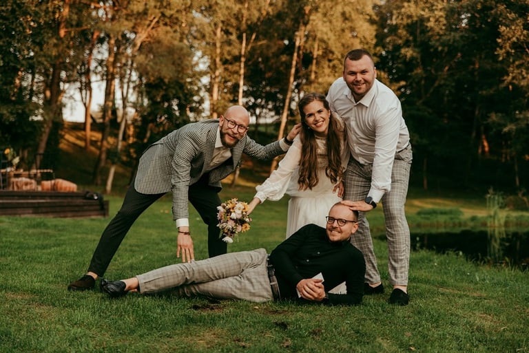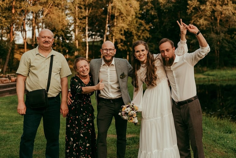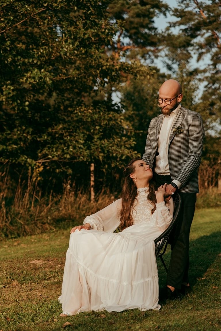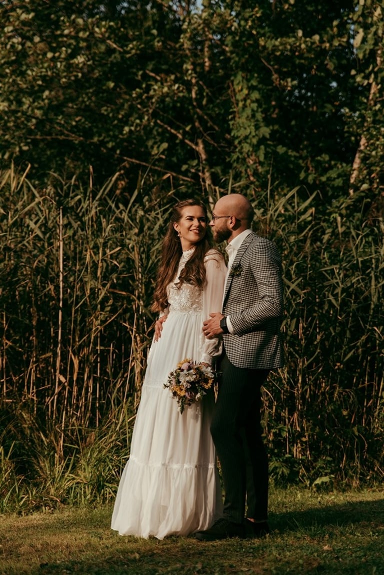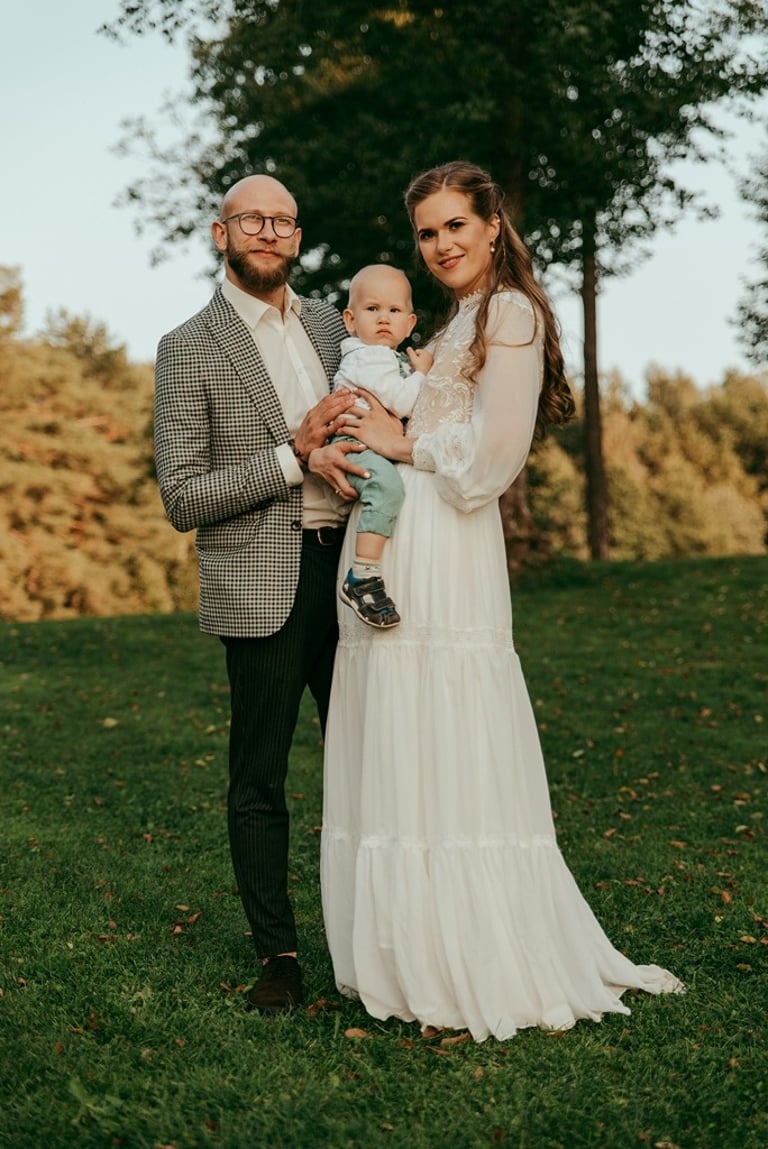 Viskas vyko vienoje vietoje - Pomiškis. Pirmą kartą išvydau Nikitą. Jis atrodė klasiškai. Po keletos minučių tolyje pamačiau ir Gretą, kuri atrodė kaip miško deivė su plazdančia suknele. Jiedu stovėjo vienas priešais kitą ir negalėjo vienas nuo kito atitraukti akių. Buvo taip gera į juos žiūrėti. Kai prasidėjo jų fotosesijos laikas, pamačiau, kokie jie panašūs ir tuo pačiu skirtingi. Nors ir sakė, kad fotosesija jiems toks neįprastas reiškinys, tačiau viskas vyko sklandžiai, pajuokaujant, surimtėjant. Dar kartelį sveikinu, Greta ir Nikita, tapus oficialia ŠEIMA! Džiaugiuosi už judu ne ką mažiau nei tėvai, geriausi draugai ar giminės. Ir toliau taip vienas kitą stebinkit, kaip išgirstuose pasakojimuose tą dieną, toliau kurkit didžiulius ateities planus, neužsisėdėkit ir Emiliui kompanioną organizuokit, o Karamelei irgi kokį draugelį.
