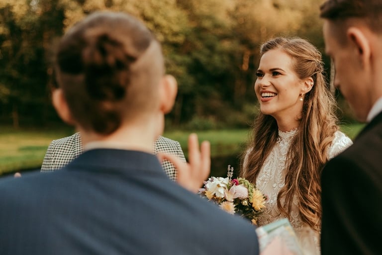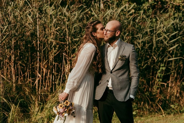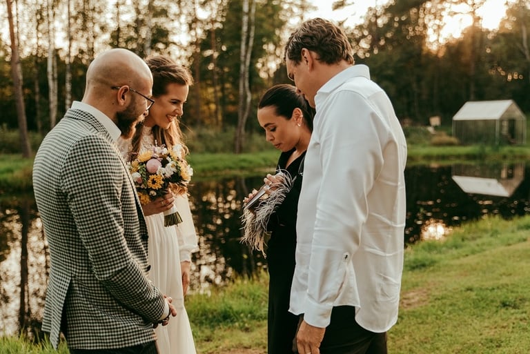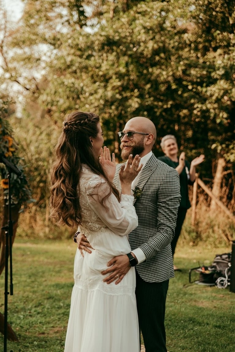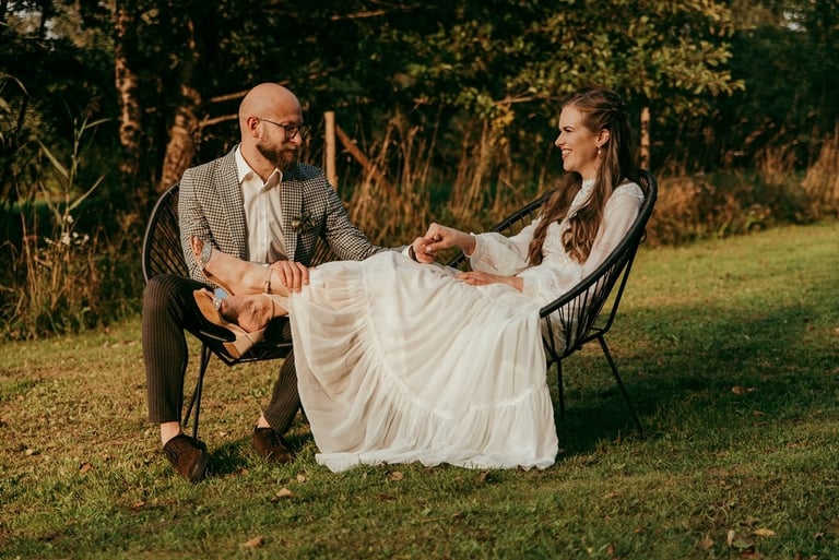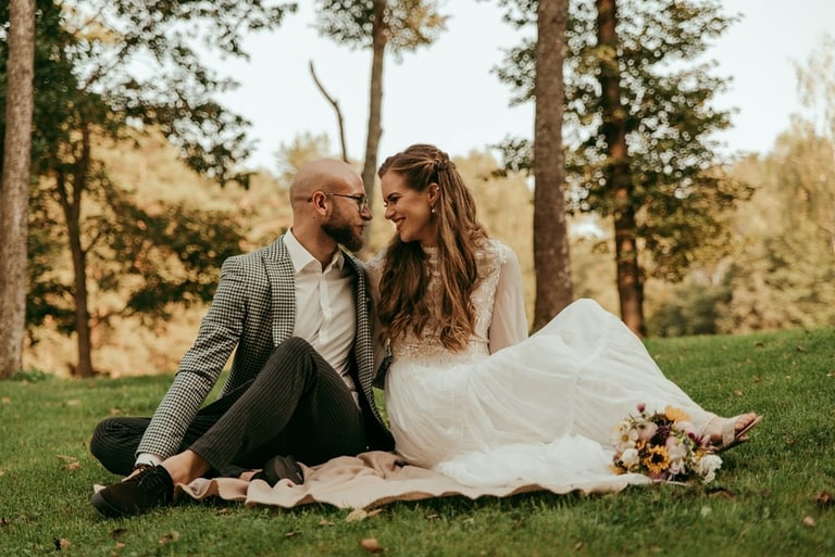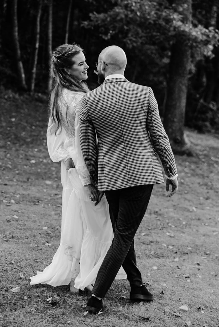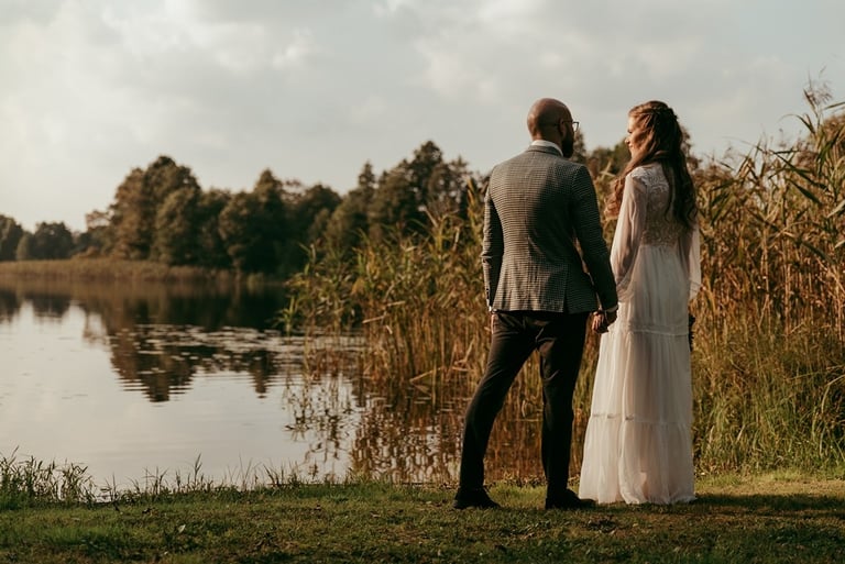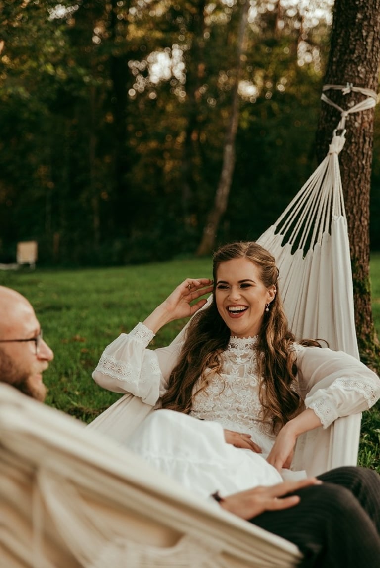 Viskas vyko vienoje vietoje - Pomiškis. Pirmą kartą išvydau Nikitą. Jis atrodė klasiškai. Po keletos minučių tolyje pamačiau ir Gretą, kuri atrodė kaip miško deivė su plazdančia suknele. Jiedu stovėjo vienas priešais kitą ir negalėjo vienas nuo kito atitraukti akių. Buvo taip gera į juos žiūrėti. Kai prasidėjo jų fotosesijos laikas, pamačiau, kokie jie panašūs ir tuo pačiu skirtingi. Nors ir sakė, kad fotosesija jiems toks neįprastas reiškinys, tačiau viskas vyko sklandžiai, pajuokaujant, surimtėjant. Dar kartelį sveikinu, Greta ir Nikita, tapus oficialia ŠEIMA! Džiaugiuosi už judu ne ką mažiau nei tėvai, geriausi draugai ar giminės. Ir toliau taip vienas kitą stebinkit, kaip išgirstuose pasakojimuose tą dieną, toliau kurkit didžiulius ateities planus, neužsisėdėkit ir Emiliui kompanioną organizuokit, o Karamelei irgi kokį draugelį.