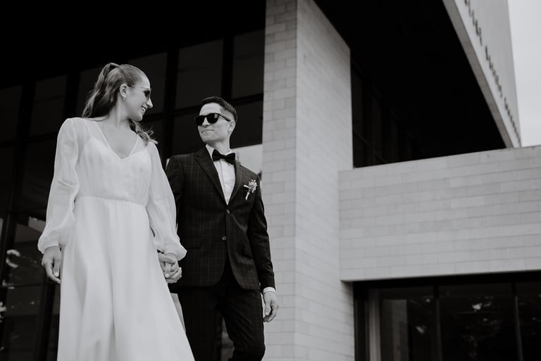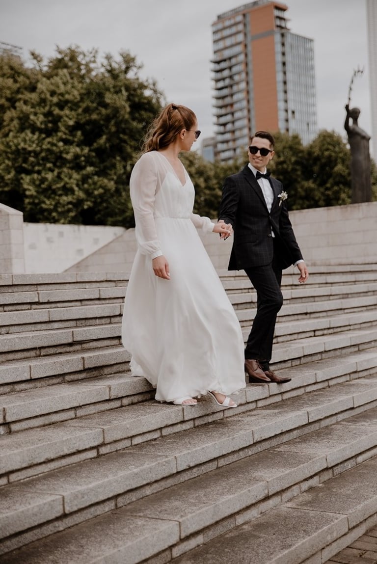 Atėjus nuostabiam orui (tikrai buvo tobulas oras, nei per karštas, nei per šalta ir debesuota) liepos 8 dieną, buvo sutuokti Kristina ir Edgar. Vos išvydus Kristinos suknelę - iškart įsimylėjau - lengva, plazdanti, be kaprizų. Kaip man tokios patinka! Jau kad jiedu kartu puikiai atrodė, nėra net kalbų. Po ceremonijos ir gausių sveikinimų bažnyčios kiemelyje palengva išvykom į fotosesiją. Buvom nusimatę nemažai vietų, bet eigoje pasikoregavome, kad per daug nenuvargtų mano jaunieji. Tačiau buvo vis tiek visko - ir urbanistinių, ir senamiestinių, ir gamtos vaizdų. Buvo be galo gražu žiūrėti į juos, kaip jie karts nuo karto pamiršta į juos nukreiptą fotoaparatą ir džiaugiasi akimirka. Hip hip hoorey! Dar kartą, mielieji, su jūsų nauja pradžia! Nors esat iš skirtingų kultūrų, bet iš jūsų vienas kito pajautimo atrodo, kad jūs sukūrėt savo kultūra, kurioje jaučiatės vienas kito verti, vienas kitą suprantantys, vienas kito artimiausias žmogus. Kristina, tavo šypsena ir Edgar nuolatinis juokas, vos man ištarus kokį rimtesnį žodį - užkrečia ir tikiuosi tuo dar labiau užkrėsit visus savo artimuosius bei draugus. Buvo gera būti dalimi jūsų ypatingos dienos! Mylėkit, juokitės, skrajokit ir svajokit!