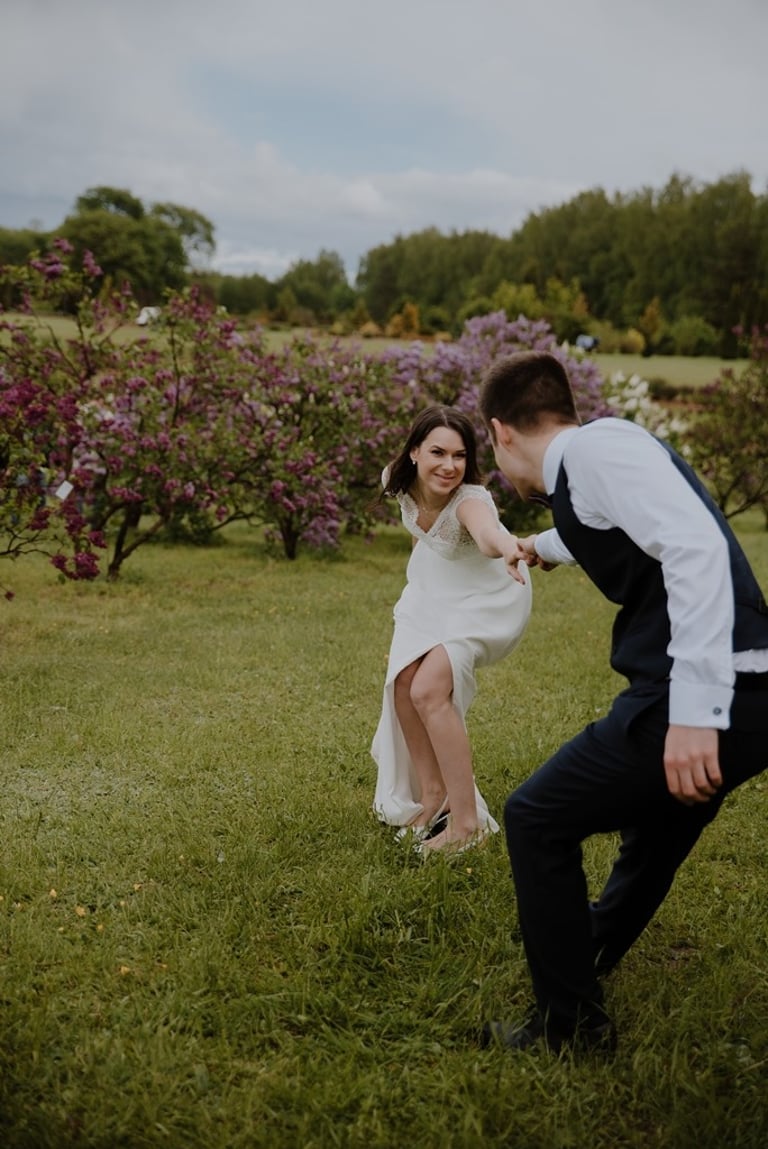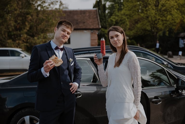 Kai jau susitikome oficialiai dėl jų šventės, tai buvo tokia emocinė bomba, nes tas Silvos paprastumas ir Manto hyperaktyvumas man toks artimas ir pažįstamas. Jiedu taip gerai vienas kitą papildo, jog atrodo, kad jau kokius 30 metų kartu gyvena. Kaip mane žavi tokie žmonės. O jau Manto rūpestingumas - ne tik apie Silva pagalvoja, bet ir apie aplinkinius. Vestuvių dienos rytą jis net prikepės sumuštinių, arbatos termosą padarė ir prieš pagrindinę fotosesiją mane pamaitino. Buvo taip nuoširdu ir kartu juokinga, kai Mantas, Silva, jų draugas ir aš automobilių stovėjimo aikštelėje užkandžiavome, o aplinkiniai kas šypsodamiesi, o kas ne, žiūrėjo į mus ir greičiausiai pavydėjo, kad tokie rūpestingi, nuoširdūs jaunieji šalia manęs.